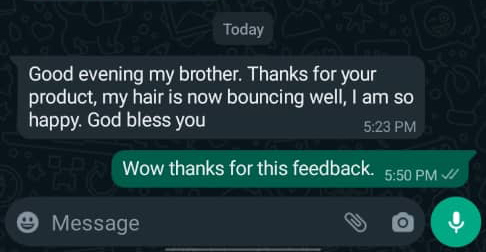 The amazing HAIRPLUS Serum has been trusted by over 1,000 men and women in Nigeria, Ghana and beyond, with consistent, positive feedback.